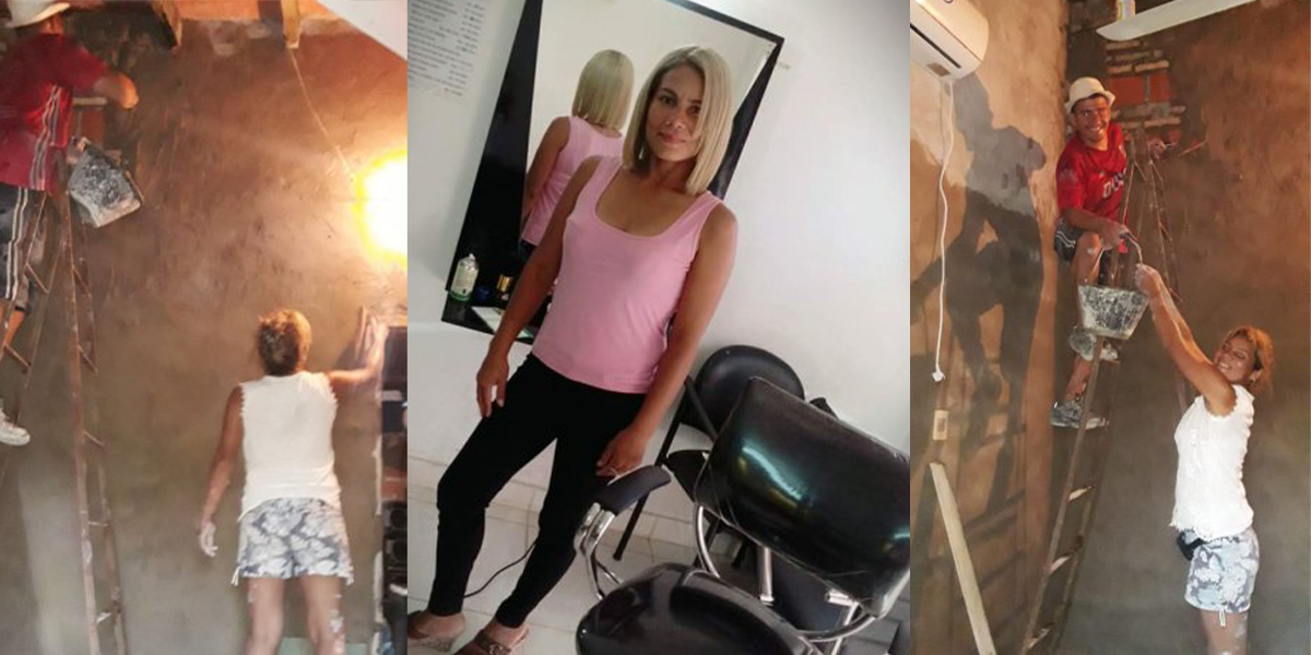 Cuando no tienen cómo pagar las cuentas, recogen una pala, una cuchara de albañil y recorren la zona para hacer arreglos domiciliarios. “Nada es imposible para el que quiere salir adelante. “¿Hay necesidad?, sí la hay. Pero con la ayuda de mi compañero trabajamos duro para lograr nuestros objetivos”, dijo la kuña guapa.//EXTRA