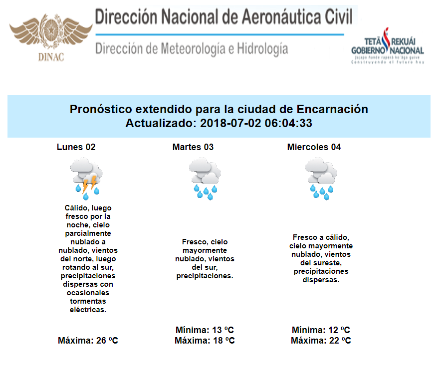 En base a los últimos análisis, los pronósticos indican que un sistema frontal frio posicionado sobre el norte argentino y parte de Uruguay avanzara hacia nuestro territorio durante la jornada de hoy lunes, generando a su paso áreas de lluvia inicialmente sobre el sur del país durante la tarde, para luego extenderse sobre el centro del territorio nacional, hacia el final de la jornada.