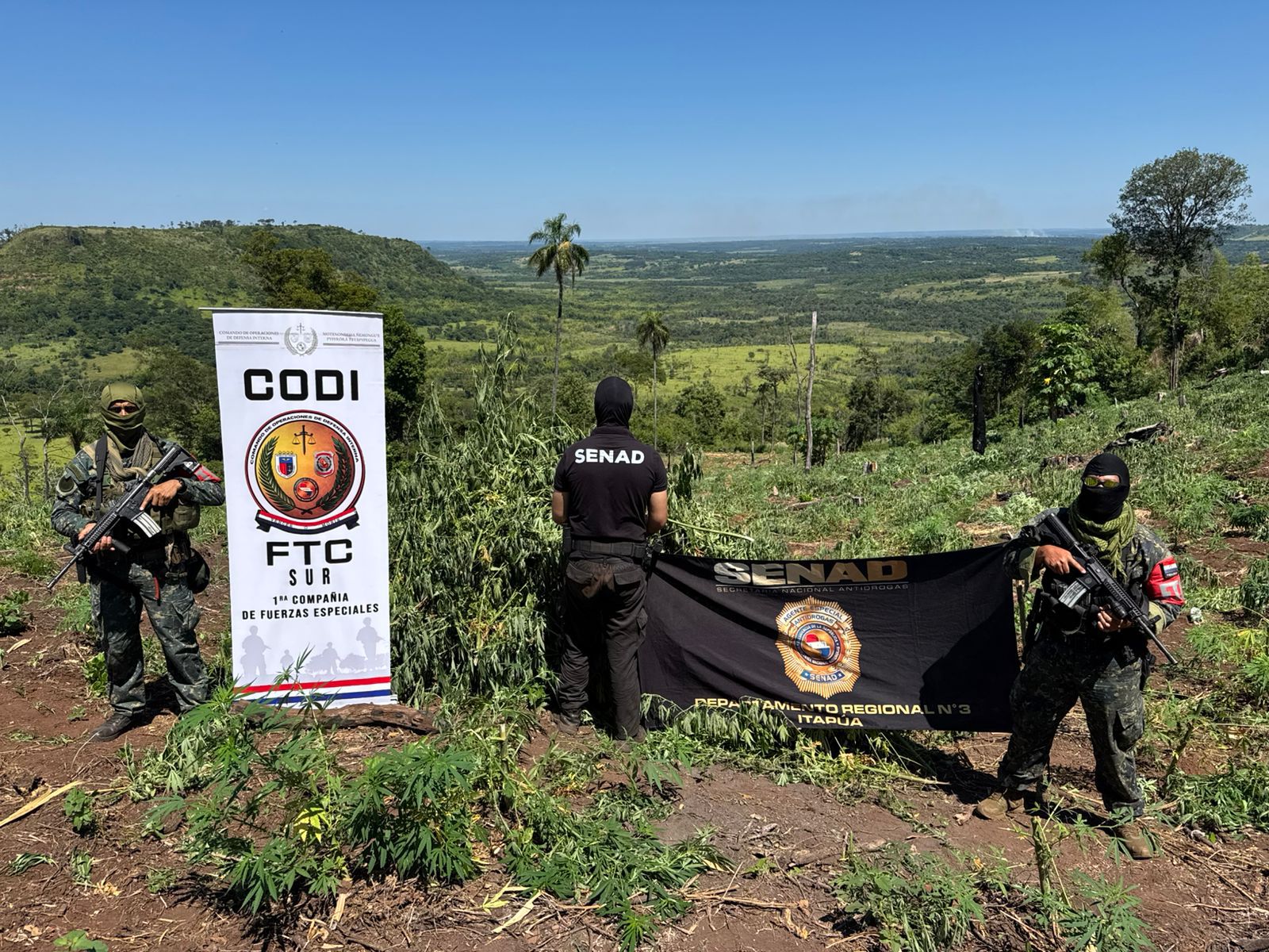 La Secretaría Nacional Antidrogas (SENAD), en coordinación con el Comando de Defensa Interna (CODI) y bajo la supervisión del Ministerio Público, llevó adelante la operación “FRENTE SUR II”, destinada a desarticular estructuras de producción ilícita de marihuana en el Parque Nacional Caazapá y la Reserva Natural San Rafael.