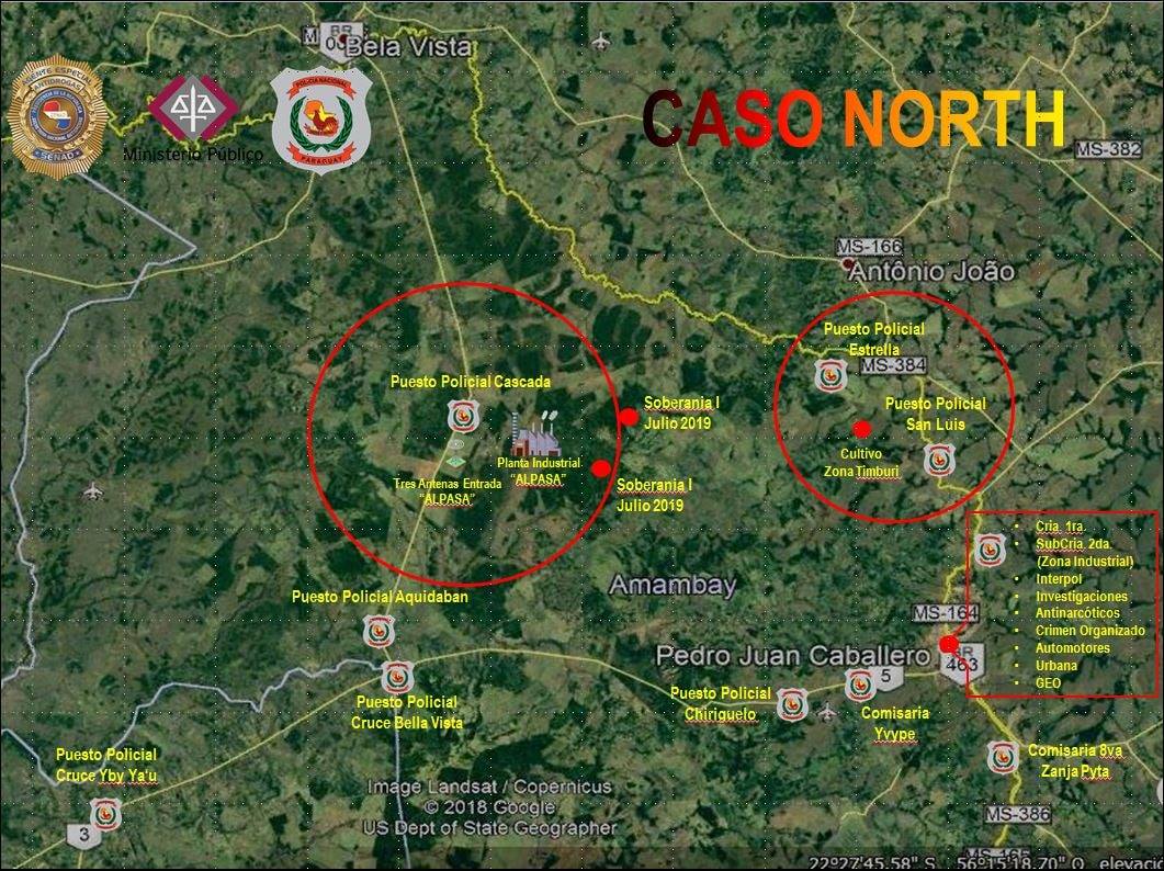 En el Operativo North uno de los detenidos este lunes fue el comisario René Aquino, quien actualmente presta servicios en la dependencia policial del kilómetro 40 de Alto Paraná. Anteriormente, se desempeñaba en la Comisaría 4ᵃ de Pedro Juan Caballero, detalló el fiscal Manuel Rojas.