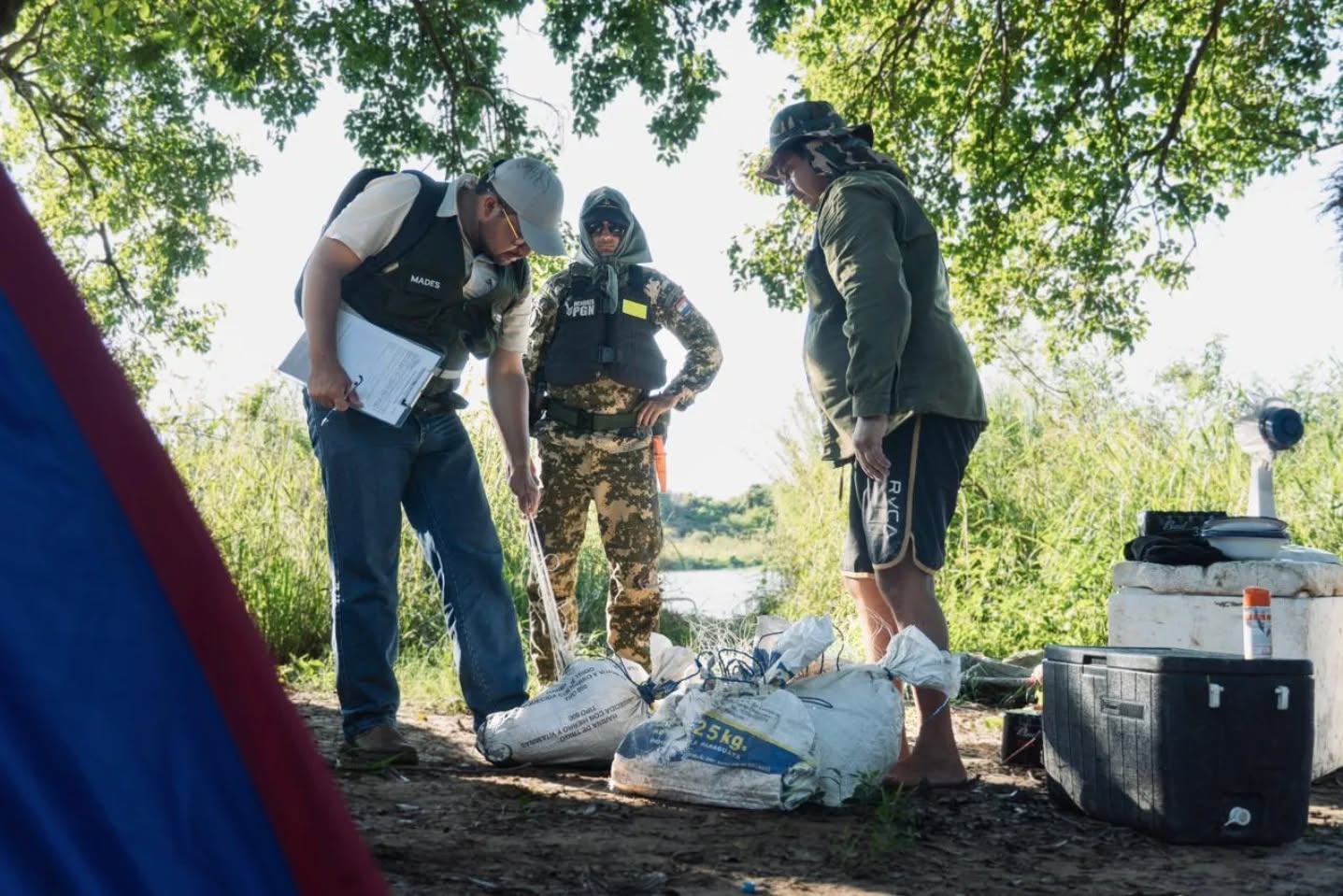 Los controles se desarrollaron con acompañamiento de la Armada Nacional e incluyeron verificaciones fluviales y terrestres en zonas del río Tebicuary, el río Paraguay y la laguna Gadea. Durante los procedimientos se constataron infracciones vinculadas al uso de artes de pesca no permitidas y se labraron las actas correspondientes.
