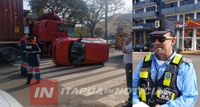 VUELCO EN PLENO CENTRO DE ENCARNACIÓN: INVESTIGAN SI UNA CONDUCTURA PASÓ EL SEMÁFORO EN ROJO