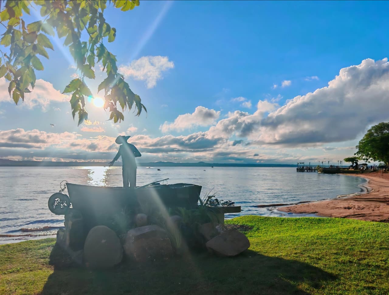 Hoy, en este verano del 2025-2026, Pedro Canoero emerge a orillas del lago, en la siempre encantadora San Bernardino, recortándose su silueta contra los colores impresionantes del cambiante “cielo guaraní” estival, a veces turquesa, a veces de fuego.  Es la obra escultórica que nació de dos artistas:  José Quevedo (59), gestor cultural y artista plástico, y Hugo Escobar Gómez (56), escultor.