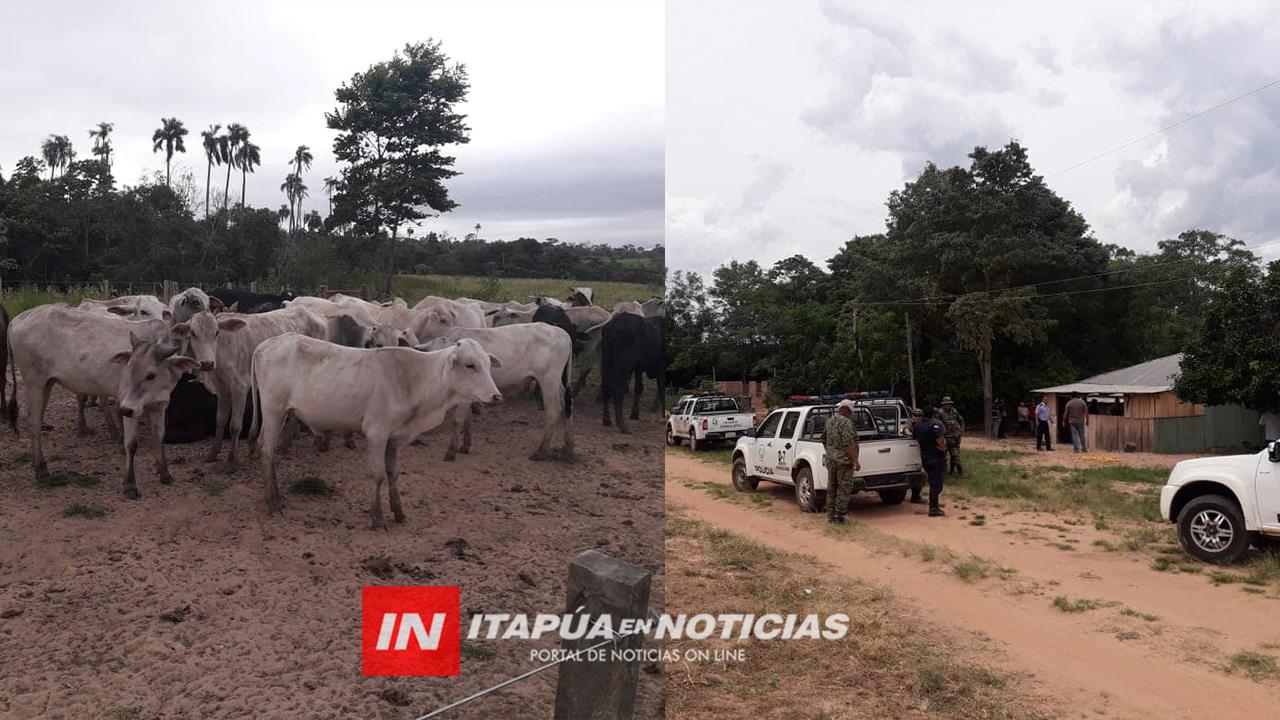Cuatro detenidos, un docente prófugo y la histórica recuperación de 46 animales vacunos robados fue el resultado del despliegue de la Policía Nacional en zona de Fleitas Cué, distrito de San Pedro del Paraná el día de ayer.