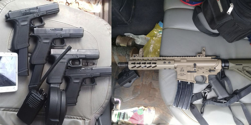 Las armas fueron halladas en una camioneta Kia modelo Soul, color blanco, con los involucrados en el vehículo.