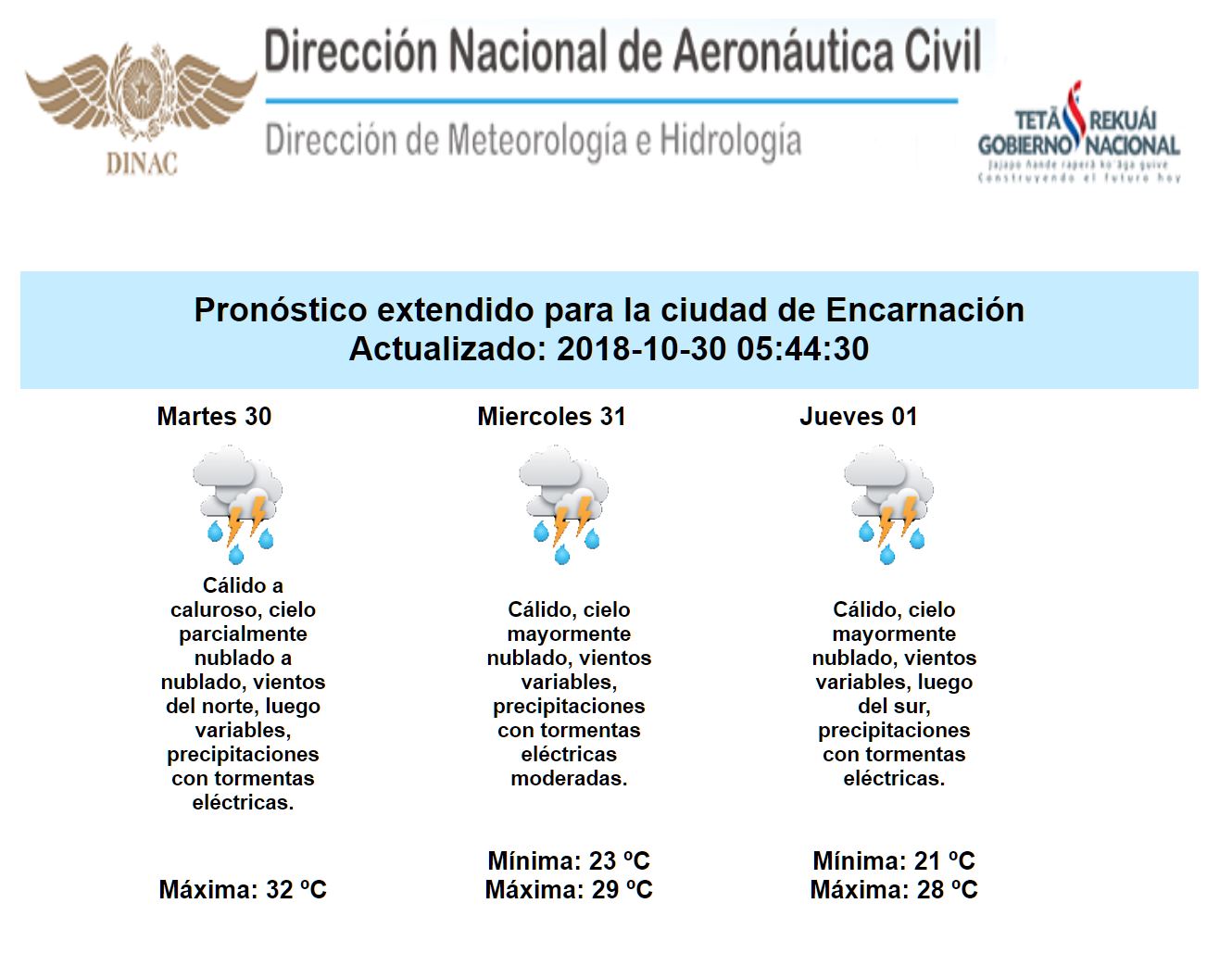 Durante la jornada de hoy martes, la probabilidad de precipitaciones iría en aumento, esperándose en consecuencia precipitaciones de variada intensidad especialmente sobre áreas del Bajo Chaco y el Centro, sur y este de la Región Oriental.