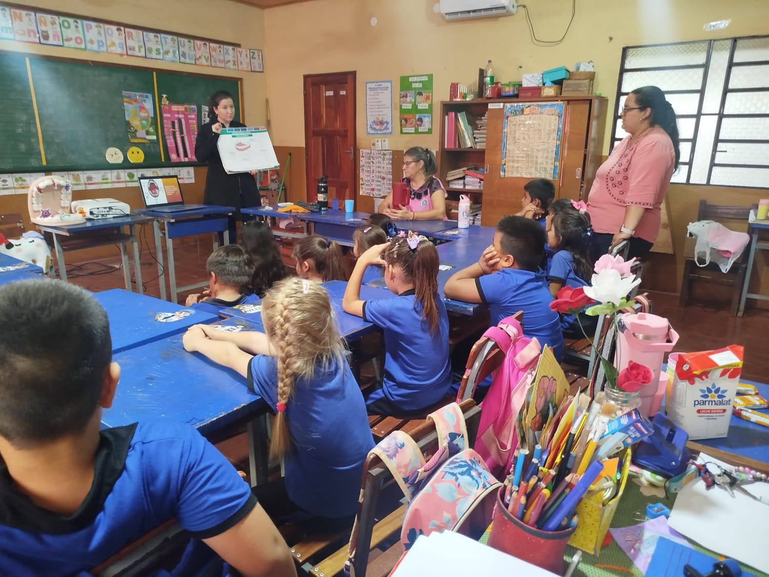 El Centro de Salud de Carmen del Paraná también participó con charlas dirigidas a niños de nivel inicial y primeros grados en la Escuela San Francisco, mientras que la USF San Isidro, del distrito de General Delgado, realizó intervenciones en la Escuela Básica San Isidro Labrador, incluyendo contenidos sobre uso de hilo dental y alimentación balanceada.