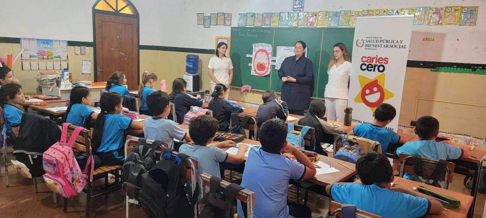 Durante la última semana, establecimientos de salud de la Séptima Región Sanitaria desarrollaron jornadas de promoción y capacitación en salud bucodental en instituciones educativas de Itapúa, en el marco del Programa Caries Cero, componente del Programa Hambre Cero.