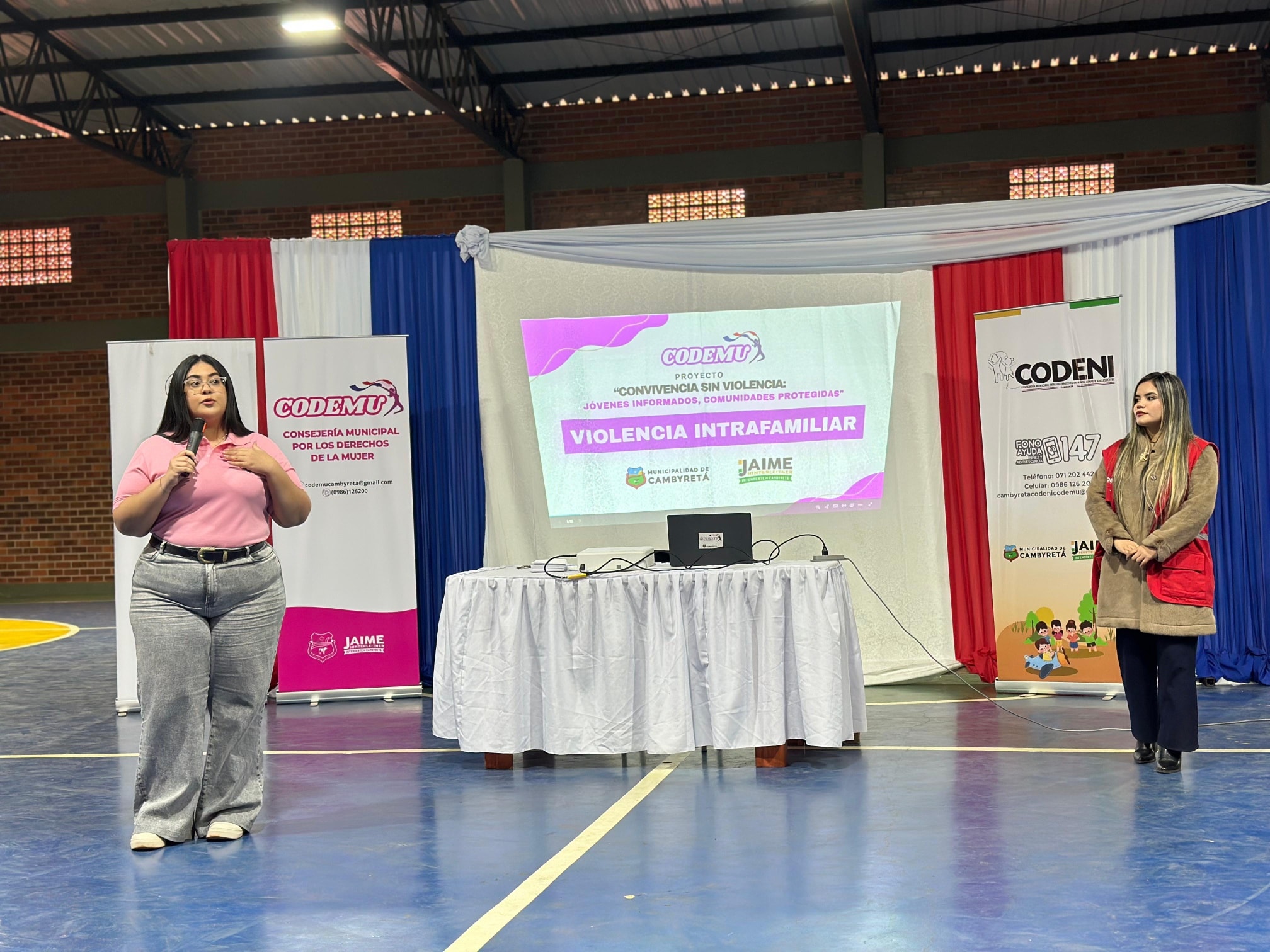 La Municipalidad de Cambyretá informó que el proyecto denominado “Convivencia sin violencia: jóvenes informados, comunidades protegidas” continúa desarrollándose en diversas instituciones educativas del distrito, alcanzando en esta oportunidad al Colegio Nacional Sagrado Corazón de Jesús de Arroyo Porã.