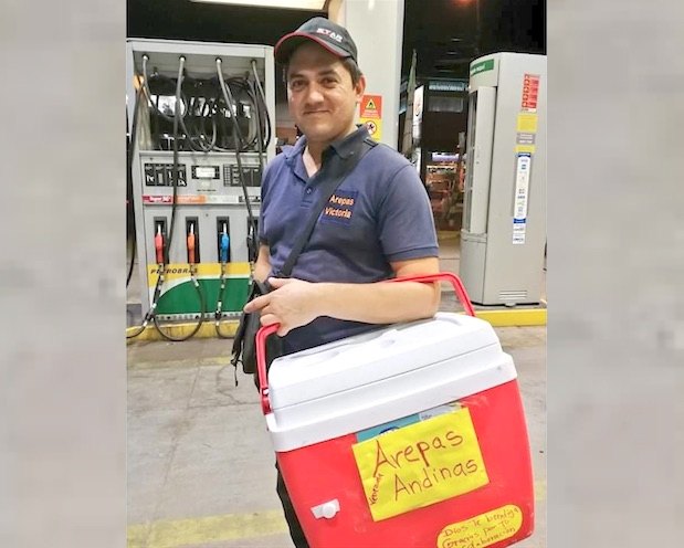 “Estoy acá desde junio pasado. Y allá estaba todo difícil. Yo salí de allá solamente con los pasajes que me habían prestado para llegar hasta Colombia, de ahí sin nada de plata. Solo con la maleta y nada más. Fue algo muy feo, pasar hambre y necesidades. Eso nos obligó a salir”, comenzó a contar a Crónica el don, que apenas llegó comenzó a buscar trabajo. De día ahora trabaja en un supermercado y por la tarde desde hace tres meses comenzó a vender arepas, una comida típica de su país, frente a una estación de servicio ubicada sobre la avenida Eusebio Ayala, en el km 5.