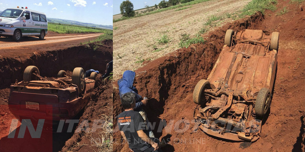 Cristian Pereira iba al mando de su automóvil sobre un camino vecinal en el km 58 de la Colonia Naranjito, en un momento dado quiso desviar una motocicleta, pero no se percató que al costado del mencionado camino había un profundo pozo.
