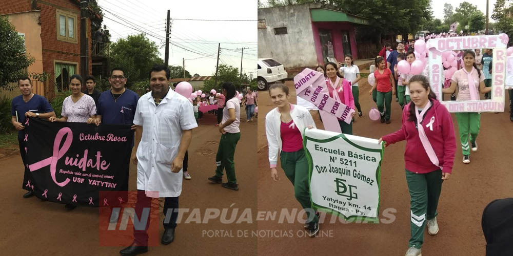 La Escuela Básica Don Joaquín Gómez de Yatytay km. 14 realizó un proyecto comunitario denominado “Lazos de Amor” con el fin de concienciar y sensibilizar a las mamás de la Institución y mujeres de toda la comunidad sobre el Cáncer de Mama en coincidencia con el Día Mundial de la Lucha Contra el Cáncer de Mama. Se ha realizado una caminata por la calles de la ciudad con los alumnos de la institución, madres y vecinos en general en compañía del director de la USF de Yatytay Dr. Eduardo Rodríguez, la Policía Nacional y Municipal y el Cuerpo de Bomberos de Yatytay.