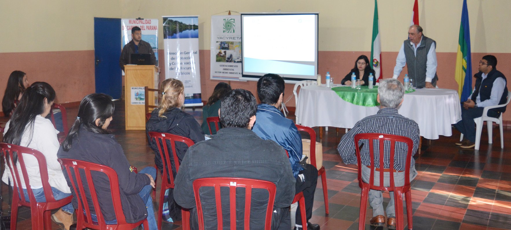Estuvieron presentes los Secretarios del Ambientes del municipio de Fram, La Paz, Carmen del Paraná, Coronel Bogado, Hohenau y Obligado. Así mismo han participado representantes del Plan Cutivando Ypora de la EBY, de la Secretaría de Turismo del Municipio de Carmen del Paraná y representantes del Cuerpo de Paz que viene apoyando al municipio de Carmen del Paraná.