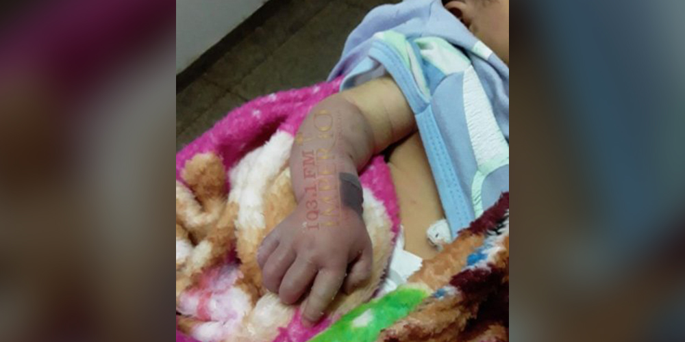 Ella y sus familiares manifestaron que los profesionales no le encontraban la vena para colocarle el suero y que “le hincaron todo mal”. Según la madre, cinco días estuvo bien pero el miércoles le cambiaron la vía, y ahí la manito del bebé se puso hinchada y azulada. Ayer le volvieron a cambiar la vía y su aspecto empeoró.