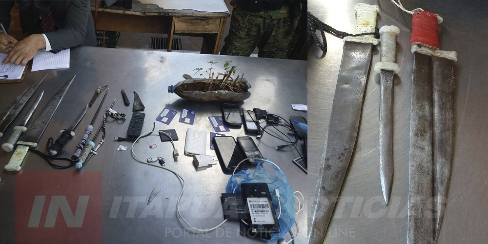 Efectivos de la Subcomisaría de Arroyo Porã del distrito de Cambyretá informaron que el procedimiento estuvo a cargo de la Fiscal de la Unidad N° 8 Liliana Galeano, así Grupo Especial de Operaciones G.E.O., en donde se procedió a la incautación de armas blancas y varios aparatos celulares con cargadores.