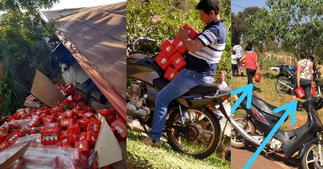 Muy lejos de ayudar a los accidentados, pobladores de la zona procedieron a alzarse con varios pack de cervezas ya que el camión que había sufrido el percance minutos antes transportaba dicha bebida alcohólica.