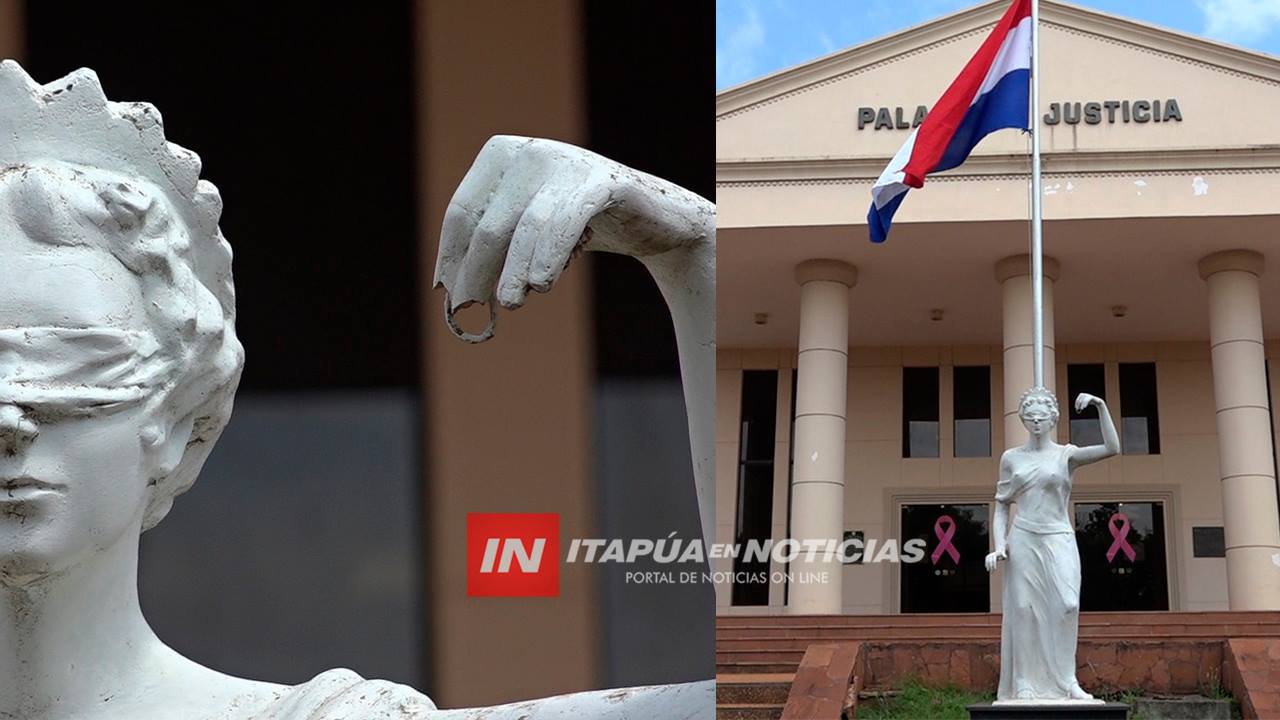 Hace un año, en medio de un acto de vandalismo habrían hurtado elementos de las dos estatuas de la diosa astrea, ubicadas en los accesos del antiguo y nuevo edificio del Palacio de Justicia de Encarnación.