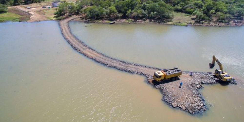 Los trabajos que se ejecutan actualmente son la construcción de un pedraplén que servirá para la contención de la arena que será refulada, además el destronque y retiro de la biomasa del sector de acceso por agua (bahía del embalse).