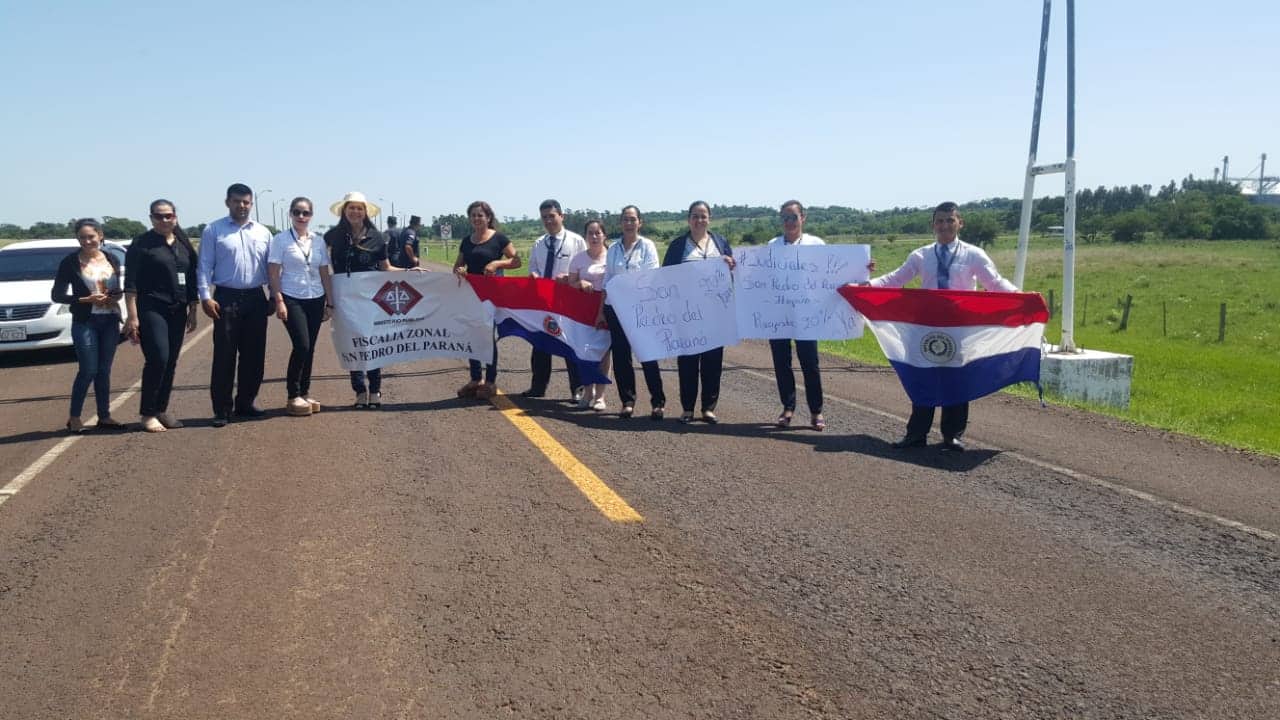 Hace instantes inició una movilización de funcionarios del Poder Judicial, Ministerio Público y Defensoría Pública, en el distrito de San Pedro del Paraná.