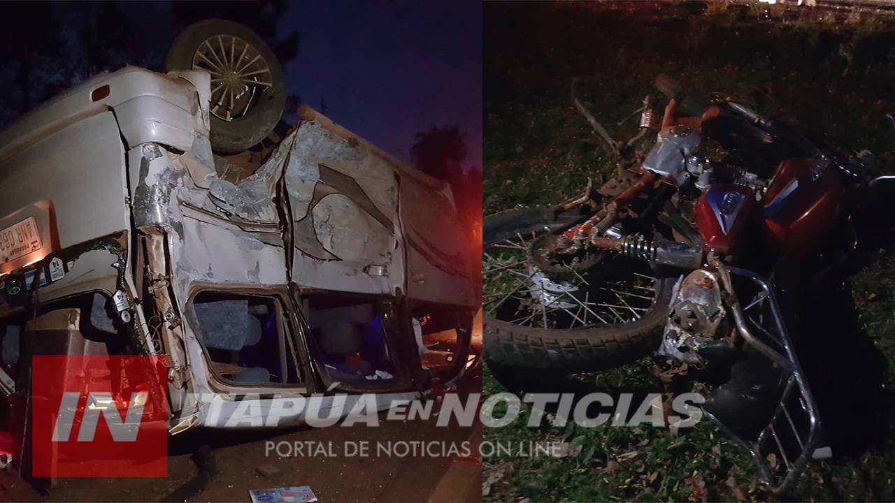 En el siniestro vial estuvieron involucrados un automóvil de la marca Toyota, tipo furgón con Chapa N° ANR 063 guiado por Rubén Eduardo Sigaud acompañado por Maria Isabel Gonoveli y Julieta Penayo de 25 años, ciudadana argentina (vehículo que volcó), por otro lado una motocicleta, sin Chapa guiada por Luis Piris Barrios de 18 años, este último se dió a la fuga del lugar y un ómnibus de la empresa Río Paraguay, guiado por Oscar Andrés Britez Ortega de 35 años, detalla el parte de la intervención policial a cargo del Jefe de la Comisaría 39 , Hugo Caballero.