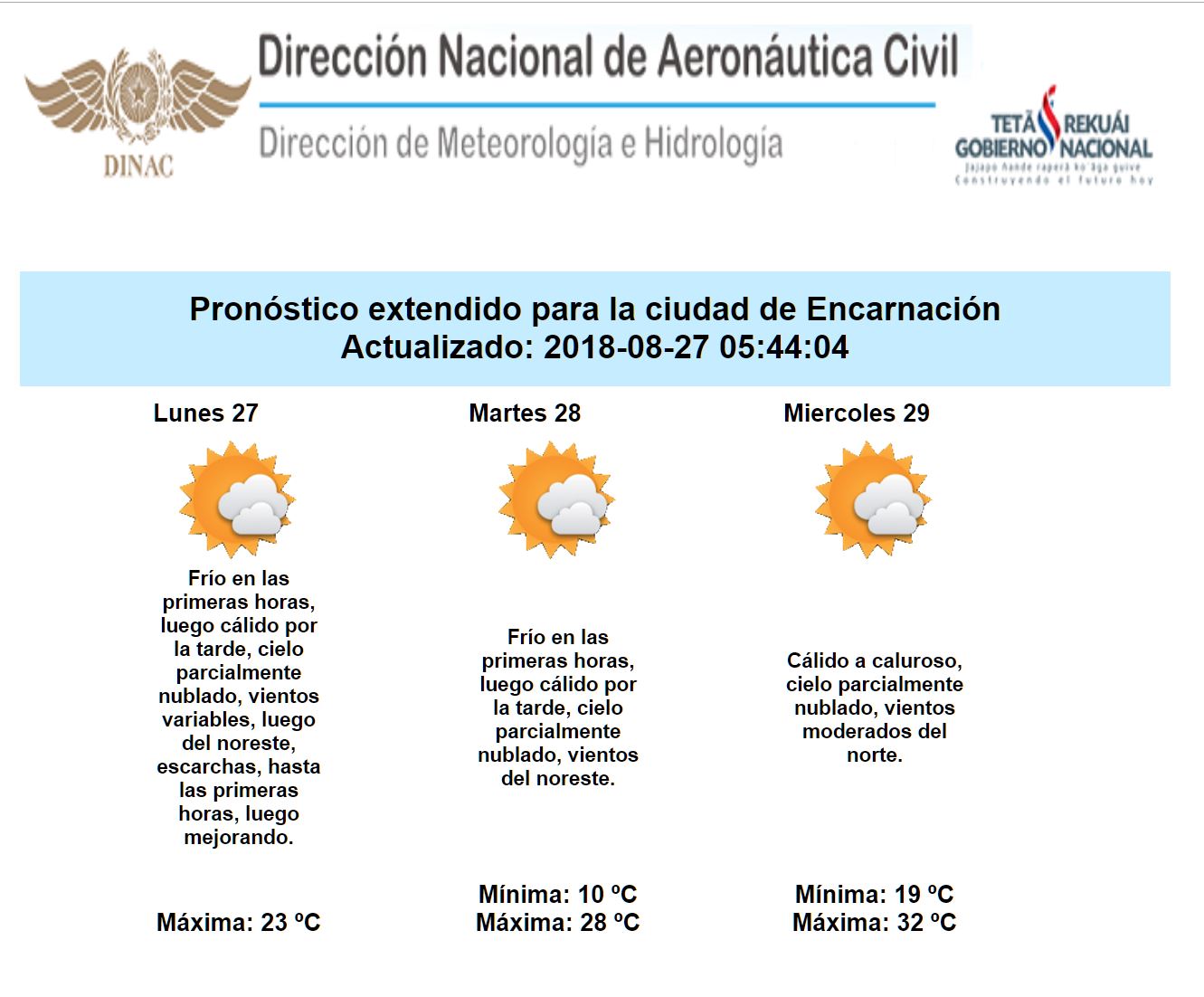 En cuanto a las temperaturas, los pronósticos indican un ascenso de las mismas, por lo menos hasta el día viernes, contando con un amanecer nuevamente frío a fresco el día de mañana martes, para luego tornarse cálida a calurosa por la tarde.