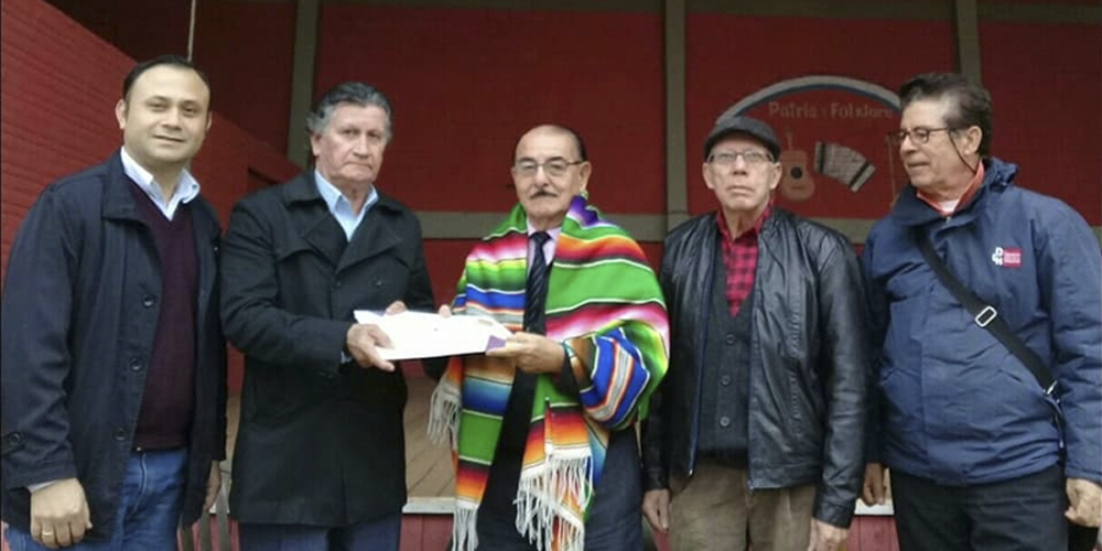 La entrega estuvo a cargo del vicepresidente de la Academia de Lengua Guaraní, Lino Trinidad Sanabria, quien además obsequió a sus pares de Franco 10 libros de su autoría.//VANGUARDIA