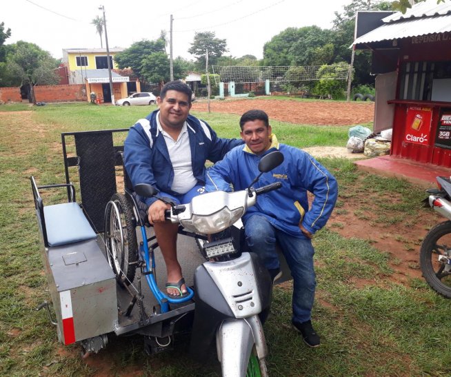 “Compramos una motoneta de 110 cc, desarmó la parte de atrás y el resto es su trabajo de metalúrgica”, detalló Insfrán. Desde hace poco más de una semana gracias a la ayuda de su casi hermano, Gabriel recorre 3 kilómetros para ir al colegio a bordo de su motocarro.