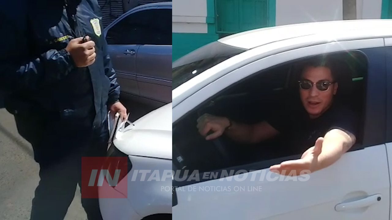 Un conductor de un automóvil Volkswagen Gol color blanco, Chapa Nro. CDN 351 fue filmado por agentes de tránsito en la mañana de este viernes cuando aparentemente con prepotencia se negaba a presentar documentos luego de estacionar en lugares prohibidos.