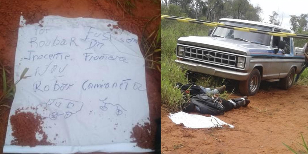 Así también, encontraron un cartel que expresaba “Por roubar inocente, no robar camioneta. Por Justicieros de la Frontera”.