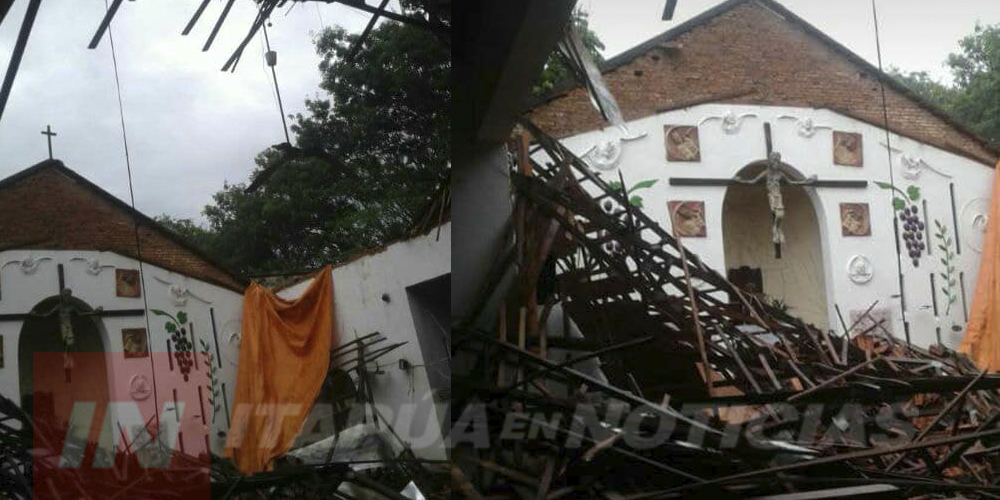 Según el informe policial de la Comisaría 29, el fuerte temporal que azotó esta madrugada el municipio, hizo que gran parte de esta estructura caiga. Afortunadamente, nadie se encontraba en el templo a la hora del derrumbe por lo que solamente hubieron daños materiales.