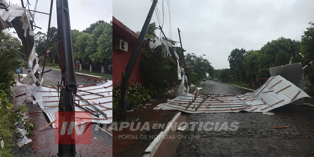 Aparentemente un remolino de viento levantó el techo de la propiedad de una esquina y la llevó al otro lado, también afectó una columna y todo el tendido eléctrico del lugar.