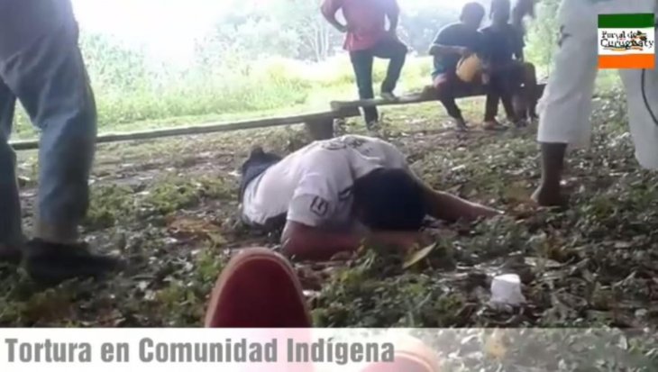 Acostado en el suelo y a la vista de todos, un joven indígena fue torturado por dos hombres. En la corta grabación, que se difundió a través de las redes sociales, se ve y se escucha cómo el muchacho gritar de dolor, mientras recibe 21 azotes con una especia de arreador.
