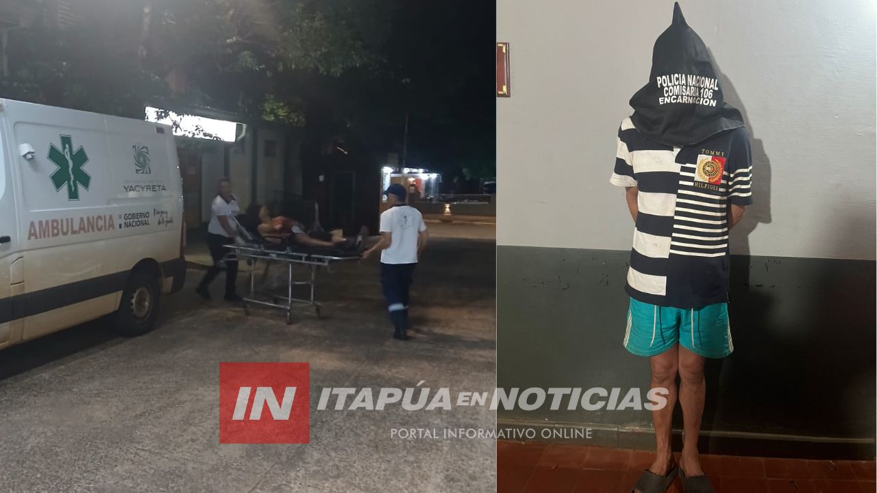 La víctima fue identificada como Pablo Hernán Cáceres, de 33 años, quien presenta una herida cortante en el brazo derecho. Según los datos policiales, el mismo cuenta con antecedentes por hurto (2019) y robo agravado (2024). Tras el incidente, fue derivado al Hospital General de Itapúa, donde permanece internado.