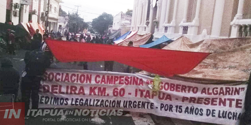 Pobladores de los asentamientos Acra y Ara Poty del distrito de Edelira y San Francisco de Tomás Romero Pereira viajaron hasta la capital del país para manifestarse frente a la sede central del Instituto Nacional de Desarrollo Rural y del Trabajo exigiendo la legalización de sus asentamientos.