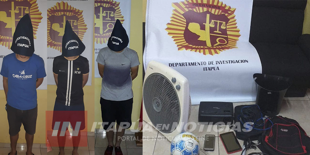Tres jóvenes fueron aprehendidos tras un allanamiento realizado este martes en una vivienda ubicada en el Barrio Buena Vista de Encarnación, propiedad de María Genara Gaona Valdéz de 70 años, donde también recuperaron objetos denunciados como hurtados.