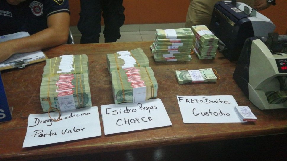 Se recuperó la suma de G. 594.000.000; es decir, G. 6.000.000 no han podido ser encontrados. Una cuarta persona, de nombre Hugo Crispín Pérez, igualmente se encuentra aprehendida, ya que existen sospechas de que habría participado en el ilícito, aunque no fue parte de la repartija.