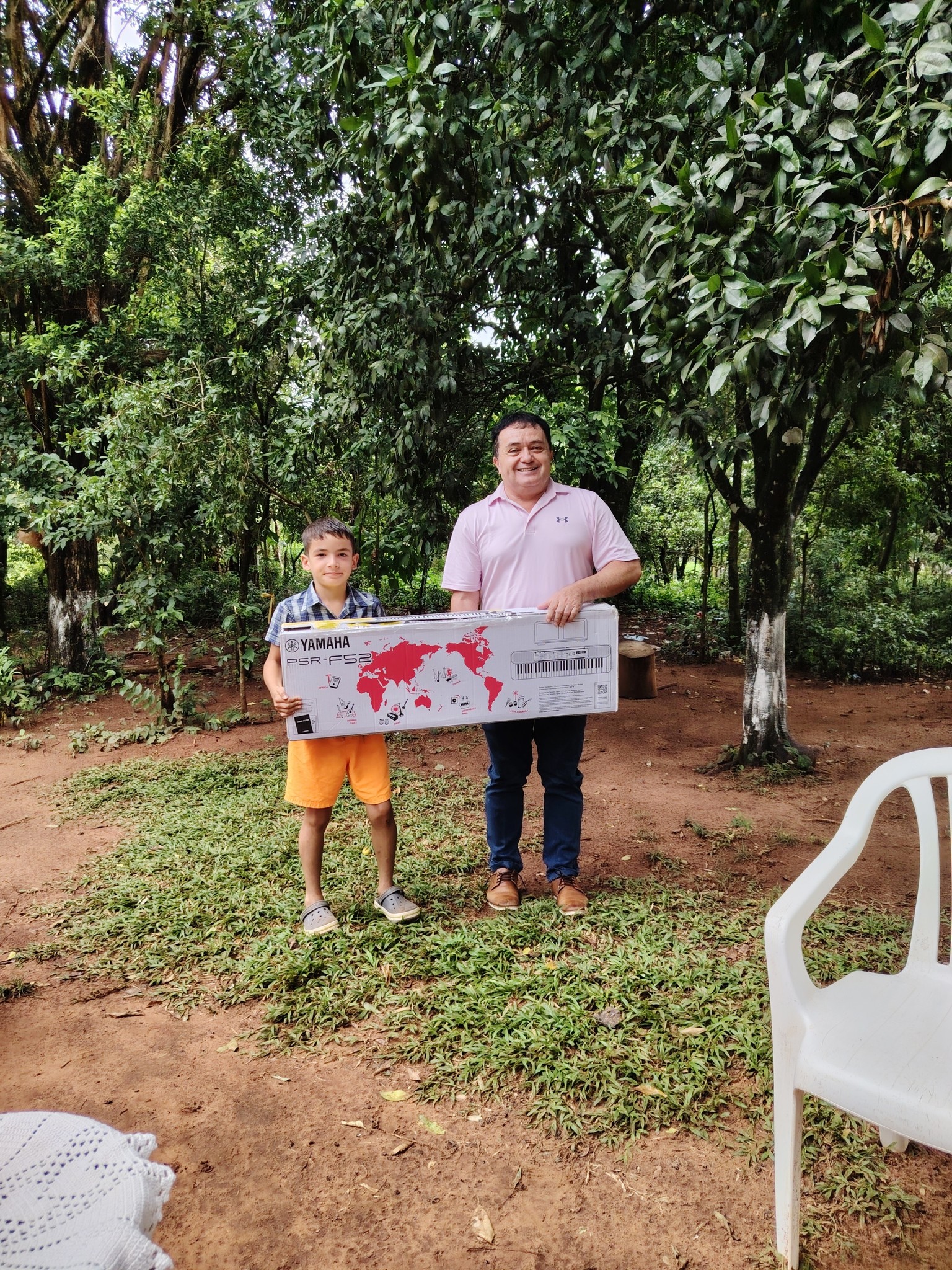 El intendente municipal de Trinidad, Isaac Aguilar, realizó la entrega de un teclado musical de la marca Yamaha al joven artista local Axel Patiño, en cumplimiento de un compromiso asumido previamente y como muestra del respaldo institucional a los talentos emergentes de la comunidad.
