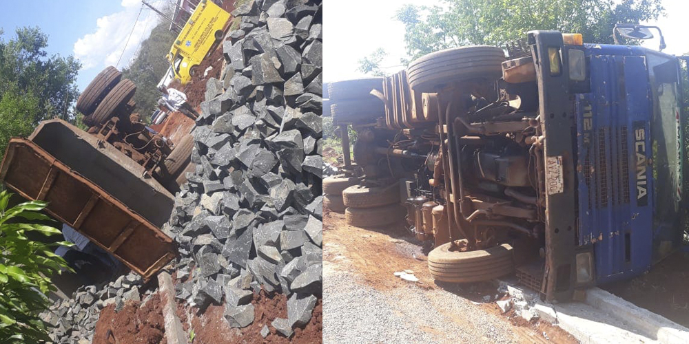 El chofer fue identificado como Orlando Giménez quien manifestó que a la hora de hacer la descarga el camión se desbalanceó y terminó volcando. Afortunadamente resultó ileso del percance. Asistieron en el lugar Bomberos Voluntarios de TRP.