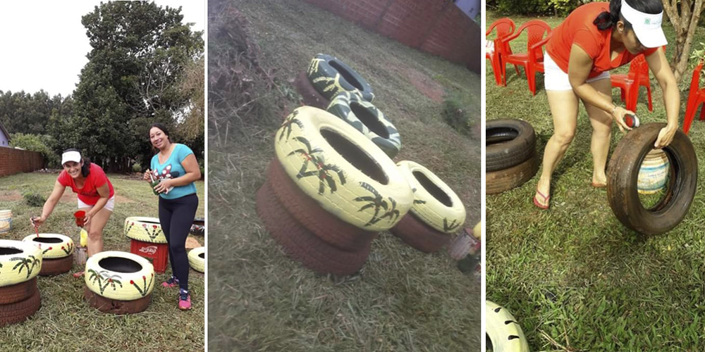 La idea surgió luego de observar el uso que le podrían dar a cubiertas viejas y tiradas a los que les podía dar un poco de arte. Así también procedieron a la limpieza de espacios públicos que serán de utilidad para todos los vecinos.