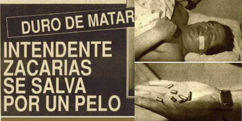 El intendente Zacarias con un balazo en la nuca y otro en la boca y su chofer con un tiro en los testiculos, sobrevivieron al atentado. El hecho se produjo sobre la calle T. Romero Pereira casi J.L. Mallorquin de Encarnación.