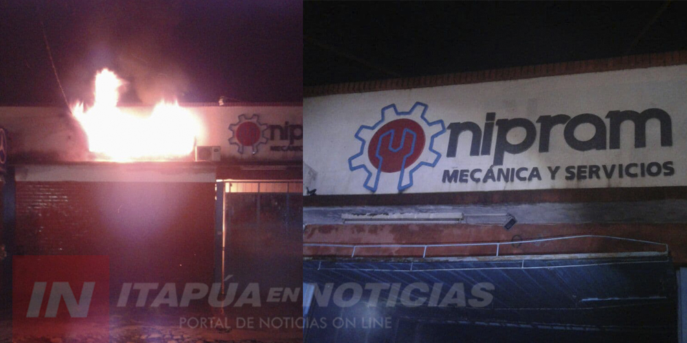 Cerca de las 22:00hs. de este miércoles un taller mecánico ardió en llamas, se trata del Taller Nipram ubicado sobre la Ruta N° 6 y calle Petronilo R. Zayas del Barrio La Paz de Encarnación, propiedad de Ramón Portillo.