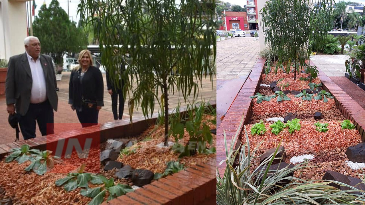 Algo inédito ocurre en el acceso a la Gobernación de Itapúa, donde han reemplazado plantas ornamentales por hortalizas.