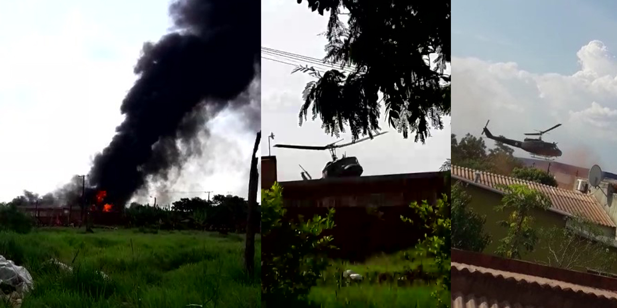 Las imágenes del accidente han sido registradas por vecinos del lugar, quienes fueron testigos del momento en que el helicóptero modelo UH, perteneciente a la Fuerza Aérea y que se encontraba a disposición de la Secretaría Nacional Antidrogas (Senad), terminó cayendo dentro de lo que al parecer sería una fabrica.