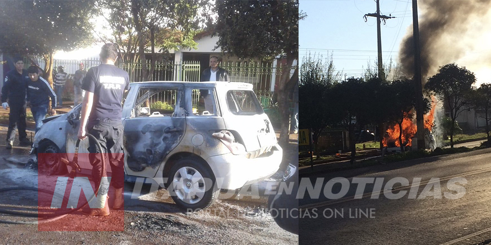 Durante la tarde de este domingo, una familia que viajaba en el interior de su vehículo en la ciudad de María Auxiliadora, distrito de Tomas Romero Pereira, pasó el susto de sus vidas cuando repentinamente el rodado empezó a despedir humo y apenas terminaban de abandonar el rodado cuando las llamas lo consumieron totalmente.