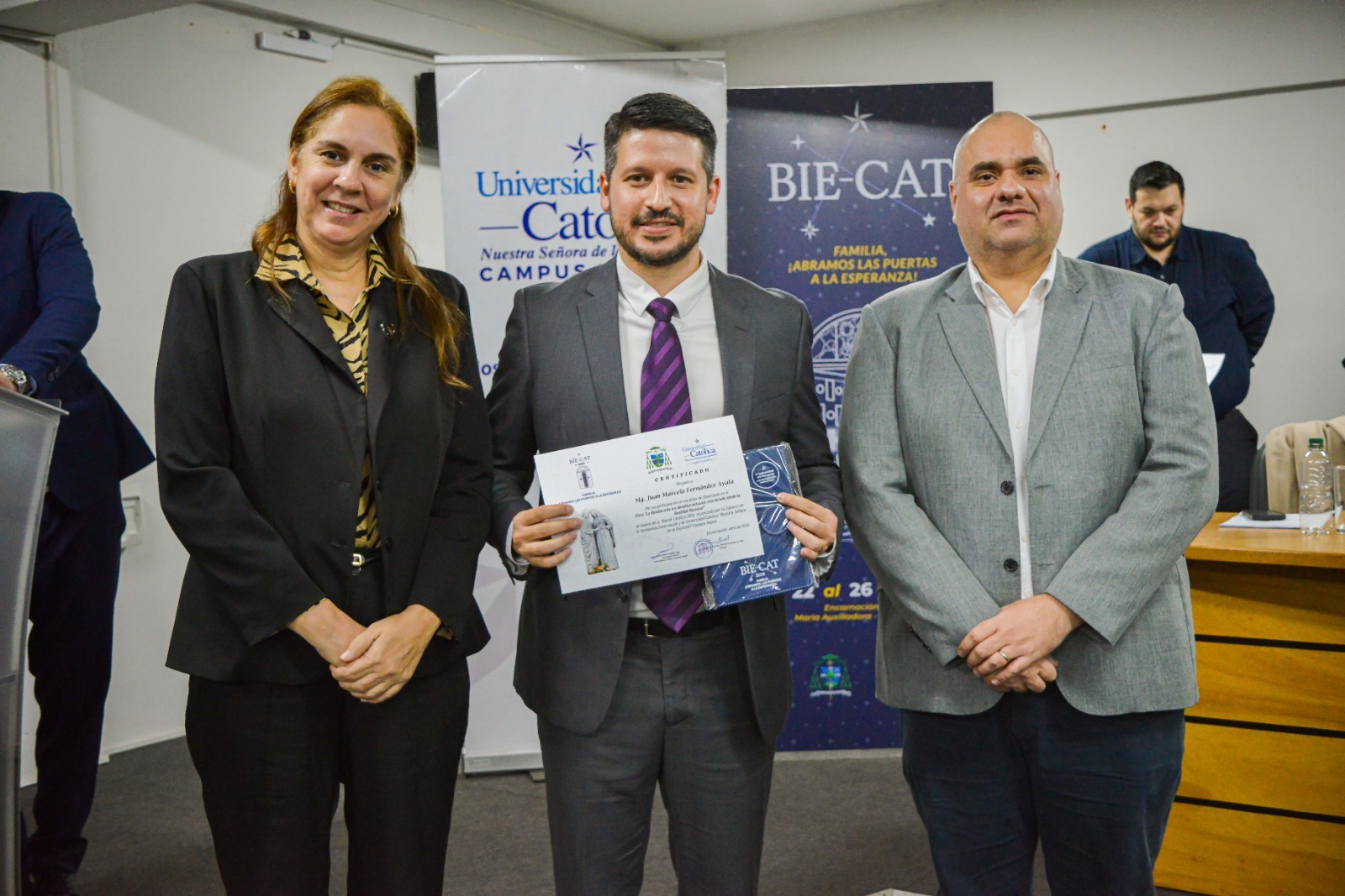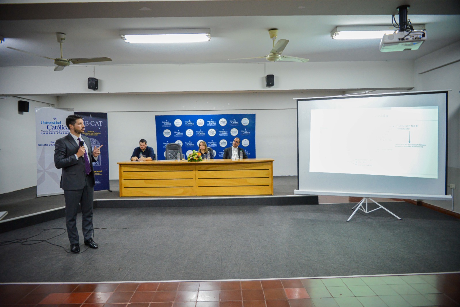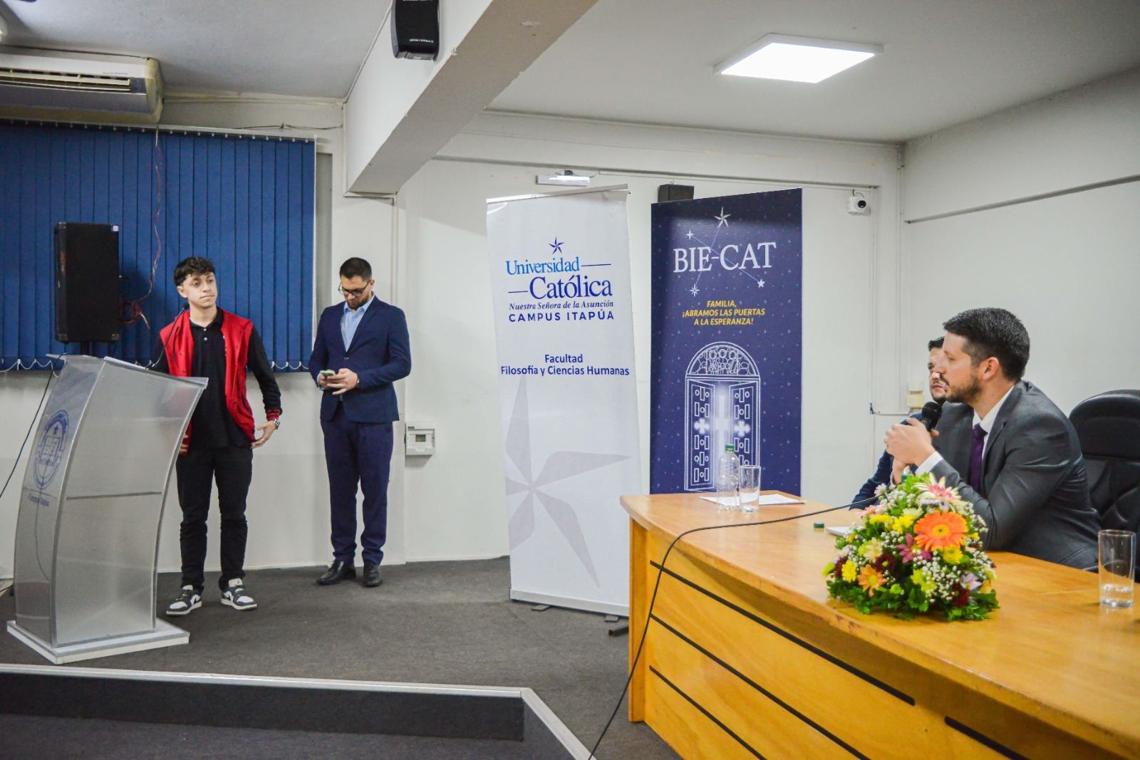La actividad tuvo lugar en el Aula Magna de la Universidad Católica de Itapúa, donde el representante del Gobierno Nacional presentó un análisis centrado en los ejes de las políticas públicas orientadas a la protección y el fortalecimiento de las familias.