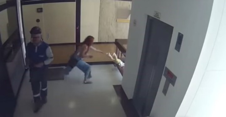 El episodio quedó grabado en las cámaras de seguridad del edificio de la empresa constructora Monserrate en Medellín, Colombia. Y es verdaderamente escalofriante. En las imágenes, que se viralizaron por las redes sociales, se ve a una madre salvando a su hijo de caer por las escaleras en el último instante.