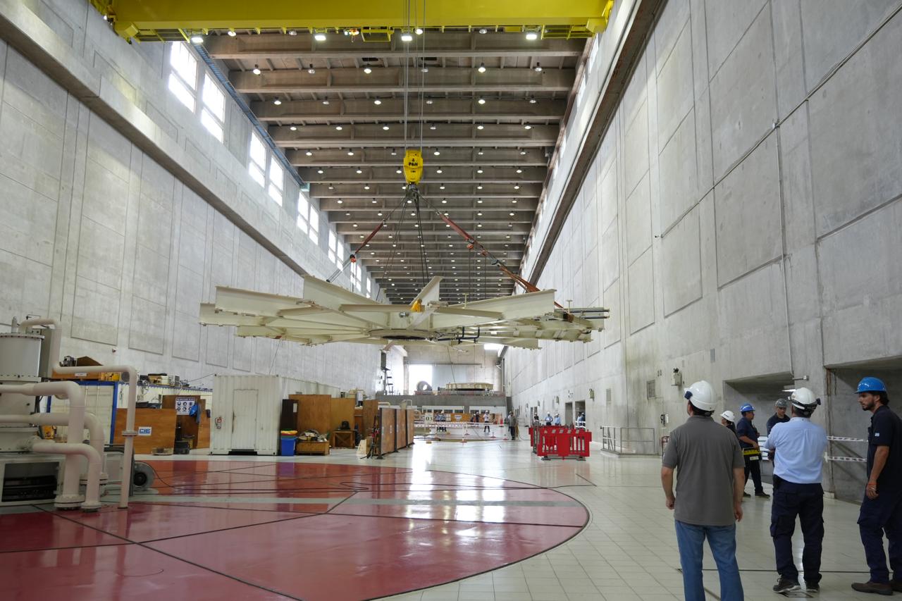 La maniobra requirió una coordinación precisa entre los puentes grúa de la central y personal técnico especializado, siendo ejecutada por la firma ANDRITZ HYDRO LTDA., con el soporte de la metalúrgica paraguaya CIE S.A. como subcontratista.